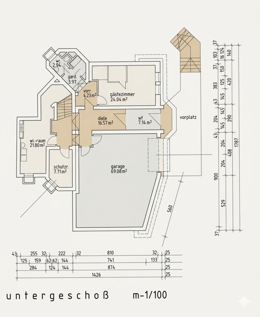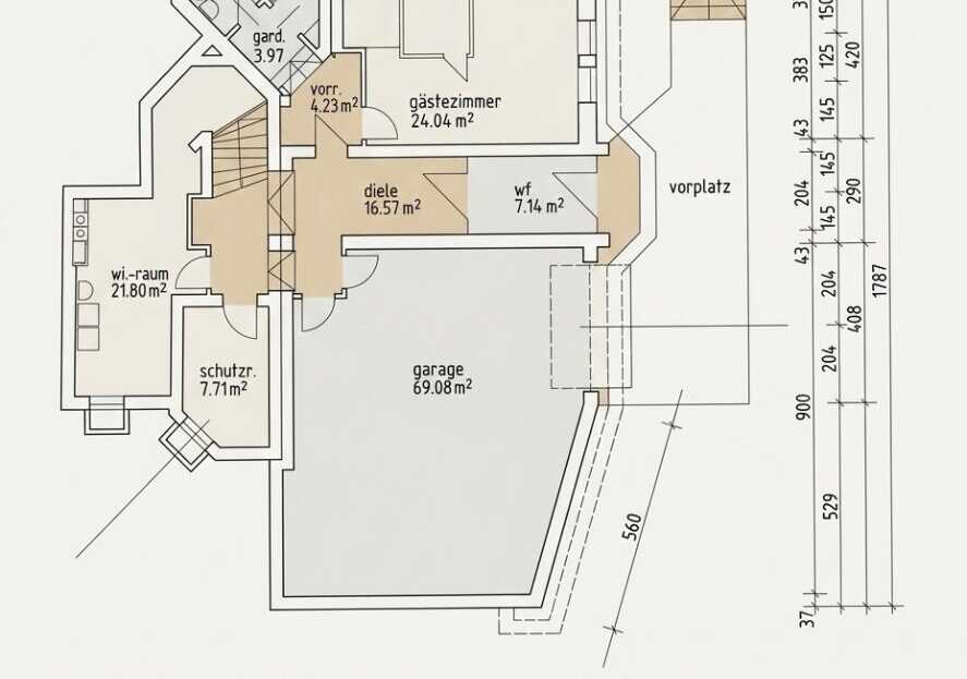 rd.      60 m² Garage (für 3 PKW´s)