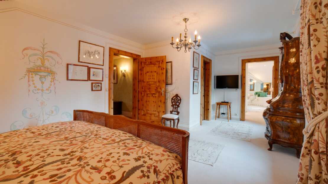 OG: Galerie, Master-Bedroom mit Ankleide, Bad en suite mit Whirlpoolwanne, und 2 Balkonen, Bibliothek, Schlafzimmer mit Wohnbereich (und Küchenanschlüssen) und Balkon, Bad (Wanne) Gäste-WC