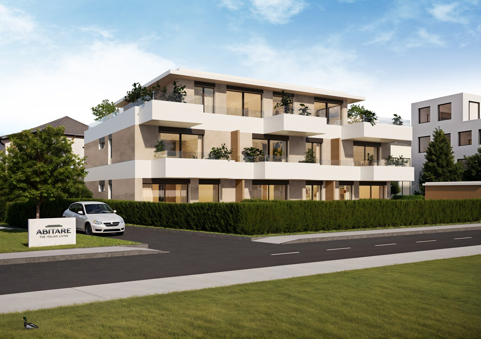 „Cityvibes & Dolce Vita“ – Willkommen in der neuen Wohnanlage ABITARE, wo sich modernes Stadtleben und mediterranes Lebensgefühl vereinen.