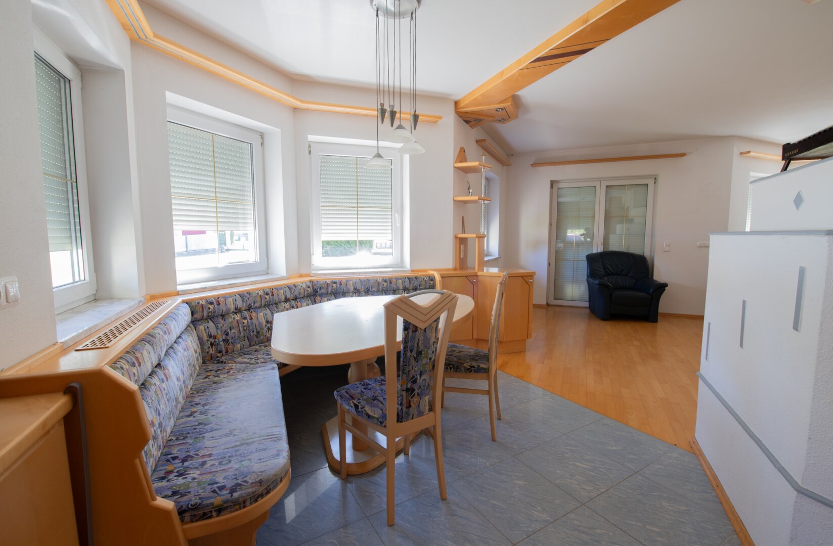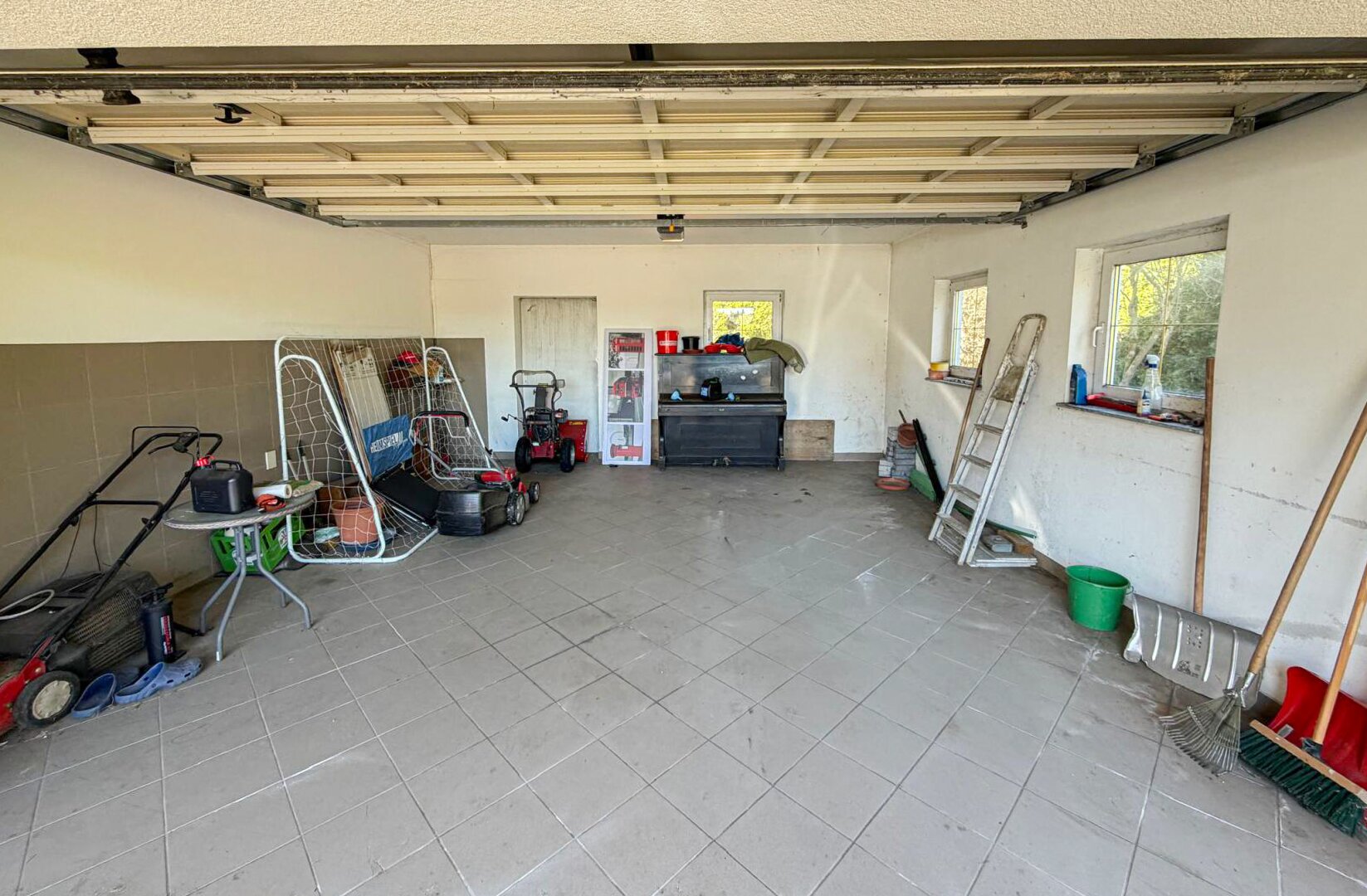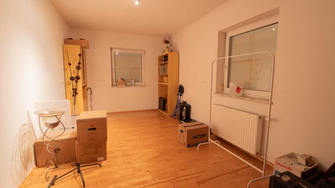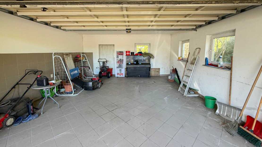 Ein besonderes Plus ist die großzügige Doppelgarage mit rund 30 m², die nicht nur Platz für Fahrzeuge bietet, sondern auch praktischen Raum für Werkstatt oder Lager schafft. Im Außenbereich laden eine sonnige Terrasse sowie der gepflegte, gepflasterte Vorplatz zum Ankommen, Verweilen und Wohlfühlen ein. Hier lässt sich der Alltag entspannt ausklingen – mit Blick ins Grüne und in angenehmer Privatsphäre.