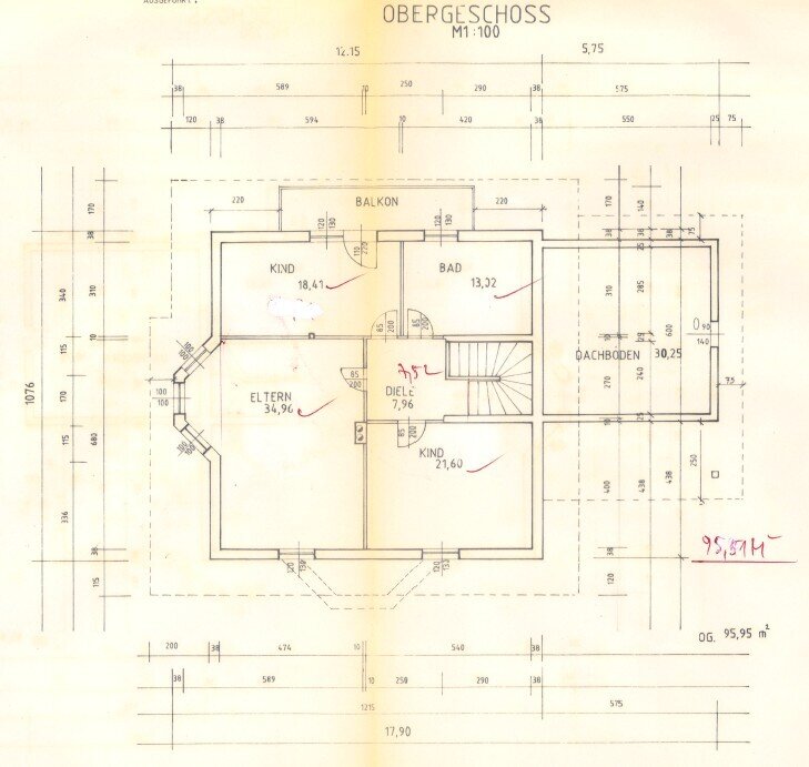 Obergeschoss: 3 Zimmer, Bad